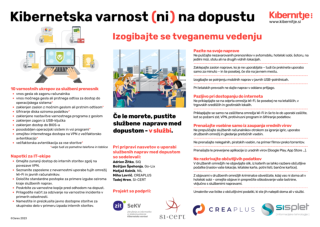 V Kibernitju smo v sodelovanju s petimi strokovnjaki za kibernetsko varnost oblikovali letak, ki je namenjen povečevanju ozaveščenosti med vodji in zaposlenimi, ki na dopustu ne morejo brez službenega prenosnika. Glavno sporočilo letaka je: “Če le morete, pustite službene naprave med dopustom - v službi.” To je namreč poleg večje varnosti organizacije dobro za počitek, odnose z bližnjimi ter krepitev ekipe v službi.